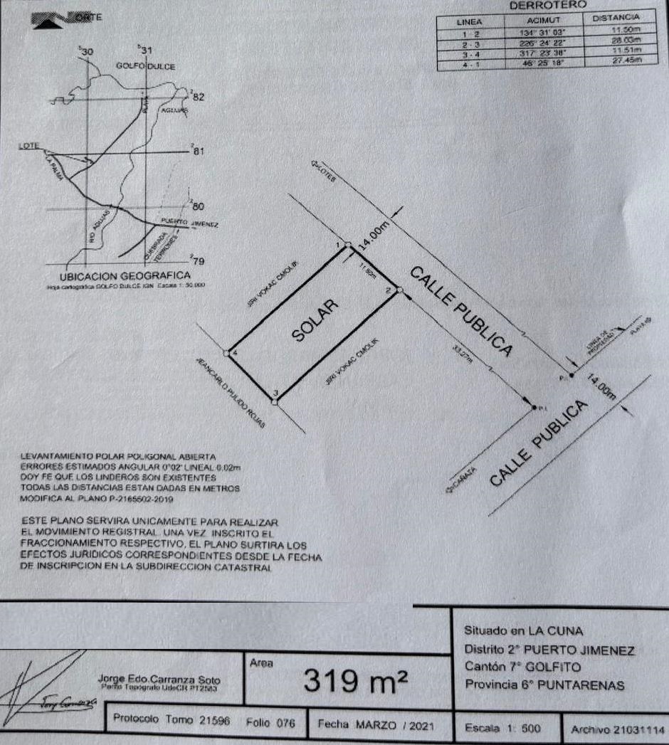 This property is located in Cañaza, Puerto Jiménez, in the area known as La Cuna, approximately 400 meters from the main entrance. Its location provides access to the beach and connection to the town of Puerto Jiménez, where the main services of the area are available.